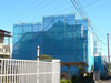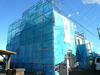 養生シートに覆われている外観