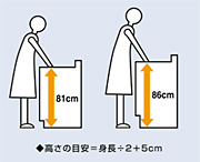 使いやすい高さが選べるように、2段階の高さを用意しました。